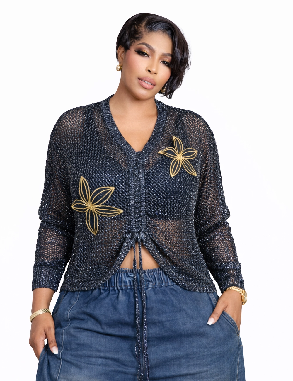 Golden Bloom Sheer Knit Top